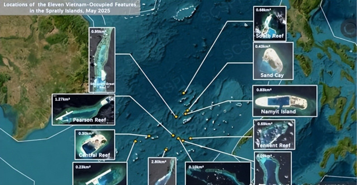 卫星监测显示,2025年全年越南完成对剩余8处礁石的填海作业。南礁、拉德礁等地点新增沙堤和后勤设施,原本仅有的小型结构被系统性取代。